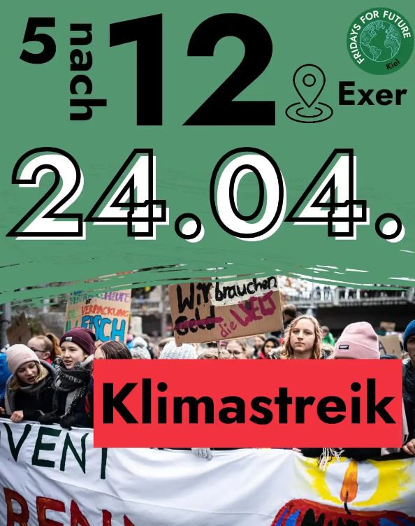 Eine Woche nach den Zentral-Demos in vier Großstädten wird der Protest gegen die Klima-Politik der Bundesregierung und die Vorgehensweise der Wirtschaftsministerin ins ganze Land getragen! Auch in Kiel wird eine Demo stattfinden – am Freitag, den 24.4. um 5 nach 12 geht es los, Treffpunkt ist der Exer.