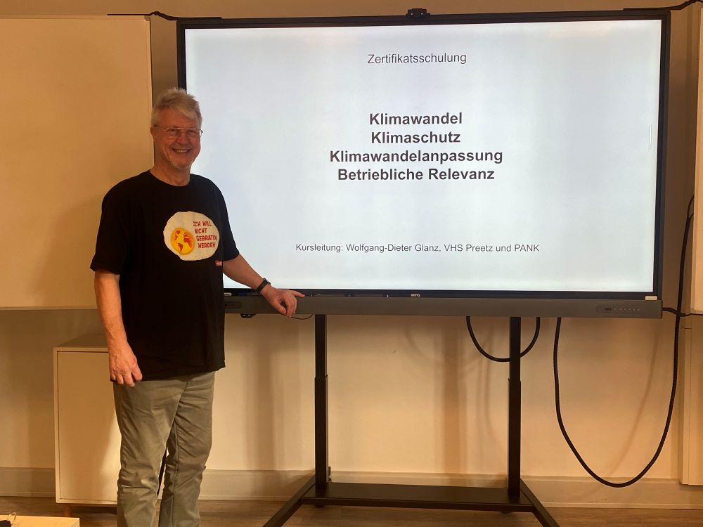 Nachhaltigkeit und Klimaschutz sind wichtige Themen im Kursspektrum der VHS Preetz. Neben Kursen für alle werden nun in Zusammenarbeit mit PANK auch Schulungen für klein- und mittelständische Betriebe in Preetz und Umgebung angeboten. „Von der Auseinandersetzung mit den neusten wissenschaftlichen Erkenntnissen zum Klimawandel profitieren alle: die Unternehmen, die sich modern und nachhaltig aufstellen und so auch ihr Image für das Anwerben von Fachkräften verbessern und die zukünftigen Generationen“, so Leonie Peters, Leiterin der VHS Preetz. Die Kurse werden von Wolfgang-Dieter Glanz geleitet, der über umfangreiches Wissen und umfangreiche Erfahrungen in Bezug auf Fragen des Klimawandels und -schutzes verfügt.
