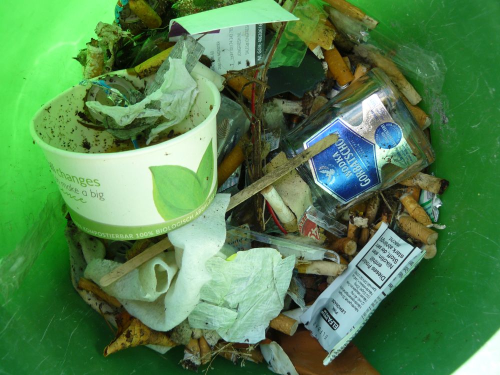 Der „PANK“ entschied, die Situation zu nutzen und spontan auf dem Marktplatz während des lebhaften Wochenmarktbetriebes achtlos hingeworfenen Müll aufzusammeln: Einwickelpapier, Servietten, Kaugummis, Notizzettel, To-Go-Becher, Kronkorken, Metallfolien, Flaschen, Eispapier, Chipstüten, e-Zigarettenpatronen, Eisbecher, Pralinenpackungen und viele, viele, viele Zigarettenkippen landeten im Sammeleimer. Die Marktbesucher kommentierten das Sammeln wie auch das „Sammelgut“ und so ergaben sich sehr interessante und freundliche Gespräche.