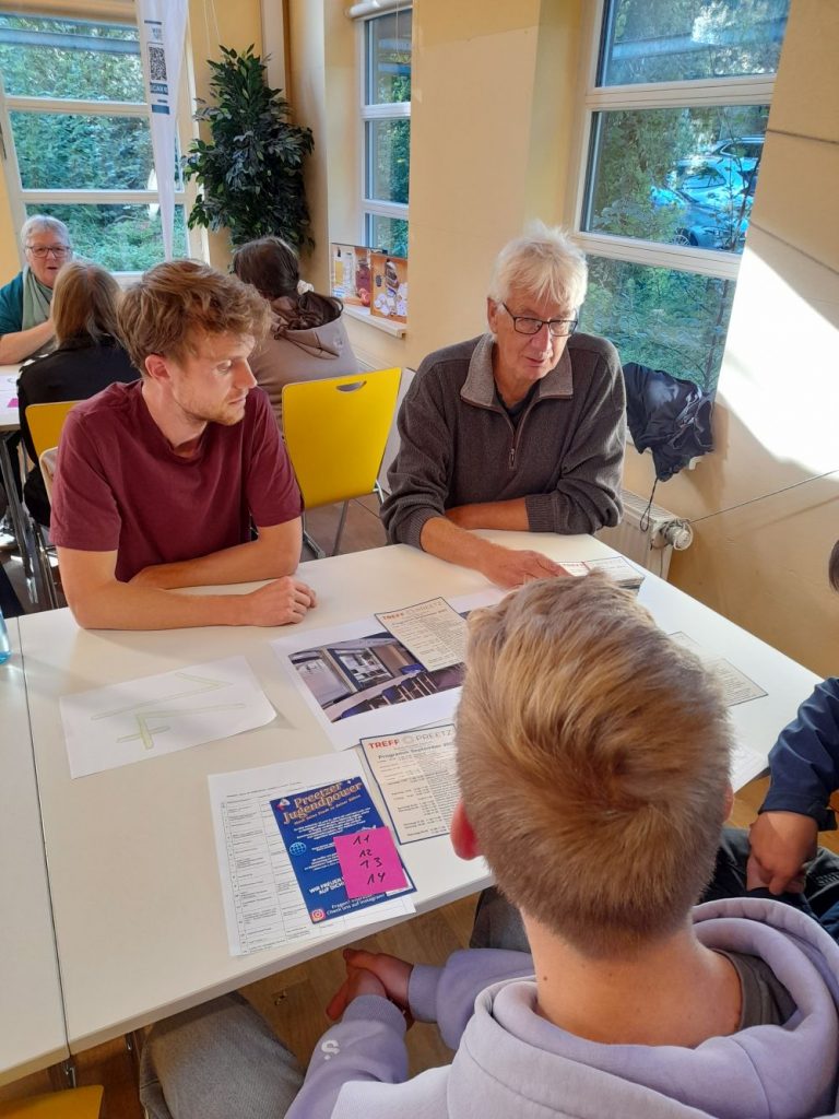Die Vorbereitungsarbeiten mündeten in einen „Markt der Möglichkeiten“, der am 23.9.2025 an der THG stattfand. Etwa 120 Schülerinnen und Schüler durchliefen in der Mensa in einer Art Speed-Dating die von den Initiativen aufgebauten Infostationen, und zwar so, dass jede Schülerin und jeder Schüler mit drei Initiativen für jeweils 10 Minuten Gespräche führen konnte. So entstand für beide Seiten eine Win-win-Situation: Die Projektsuchenden konnten Ideen für ihre Projekte sammeln und die Initiativen hatten die Möglichkeit, die jungen Menschen zu informieren und das Interesse für Ziele und Vorhaben der Initiative zu wecken. Im Anschluss an die Veranstaltung baten die Veranstalter die Anbieter um Rückmeldungen und Änderungsvorschläge für eventuelle künftige Durchführungen des Marktes. Einhellig wurde die Veranstaltung als gelungen und sinnvoll eingeschätzt. Für das nächste Jahr ist eine Neuauflage bereits ins Auge gefasst.