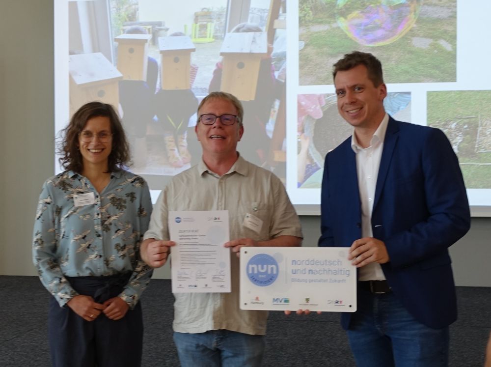 Die nun-Kommission konnte dieses Jahr drei Projekte neu zertifizieren. Auch Stefan Oberschelp hat sich mit seinem Projekt „Gemüserevolution“ erfolgreich beworben und durfte im feierlichen Rahmen sein Zertifikat entgegennehmen. Gemeinsam mit seiner Frau leitet er in Preetz die Permakids. Dabei werden auch schon die Kleinsten mit Fachwissen, Geschick und Einfühlungsvermögen in die Grundlagen von Gartenbau und ökologischen Zusammenhängen eingeführt. Eine zeitlose und über-lebenswichtige Aufgabe.