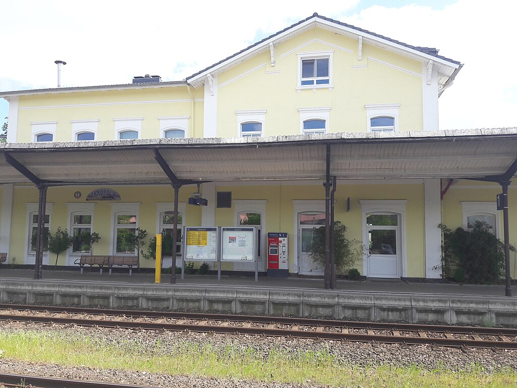 Das Foto zeigt den Preetzer Bahnhof vor der Entfernung der Bahnsteigsüberdachung.