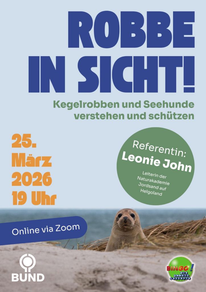 Bei diesem Online-Infoabend gibt Leonie John, Leiterin der Naturakademie Jordsand auf Helgoland, spannende Einblicke in die Lebensweise von Robben, ihre Rückkehr an deutsche Küsten und die Bedeutung von Schutz und Rücksichtnahme. Die Veranstaltung richtet sich an alle Interessierten – Vorkenntnisse sind nicht erforderlich.