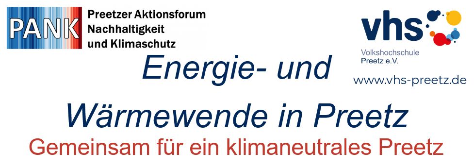 Eine offene und aufgeschlossene Atmosphäre kennzeichnete das Auftakttreffen zum Workshop „Energie- und Wärmewende in Preetz“, welcher von PANK gemeinsam mit der VHS Preetz unter der Leitung von PANK-Sprecher Wolfgang-Dieter Glanz durchgeführt werden soll. Elf interessierte Bürgerinnen und Bürger waren erschienen. Die Anliegen waren bunt gemischt, aber alle Anwesenden äußerten das gleiche Ziel: Die Energie- und Wärmewende in Preetz zu unterstützen, einerseits durch individuelle Maßnahmen, andererseits aber auch über den konstruktiven Dialog mit den politischen Entscheidungsträgern. In jeder der kommenden Sitzungen soll jeweils ein Teilaspekt des Themas besonders beleuchtet werden, wozu dann auch fachkundige Experten eingeladen werden. Als ersten Schwerpunkt hat sich die Gruppe die Einsatzmöglichkeiten von Wärmepumpen in Preetz vorgenommen.